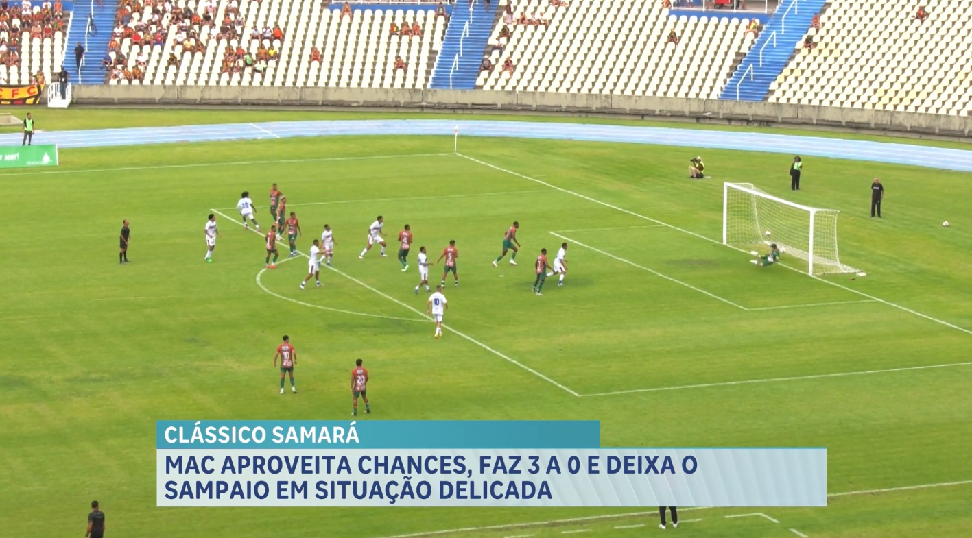 O Maranhão Atlético deu um passo importante rumo à final do Campeonato Maranhense ao vencer o Sampaio Corrêa por 3 a 0 neste sábado (7), no Estádio Castelão. O resultado deixa o Quadricolor em situação favorável para garantir vaga na decisão, enquanto a Bolívia Querida sofreu sua primeira derrota no ano. O MAC abriu o placar no fim do primeiro tempo com Vagalume, que acertou um chute de primeira após cobrança de falta. No segundo tempo, Joelson marcou de cabeça após cruzamento de Rosivan, e Nadson fechou o placar aos 43 minutos, aproveitando passe de Joelson.
