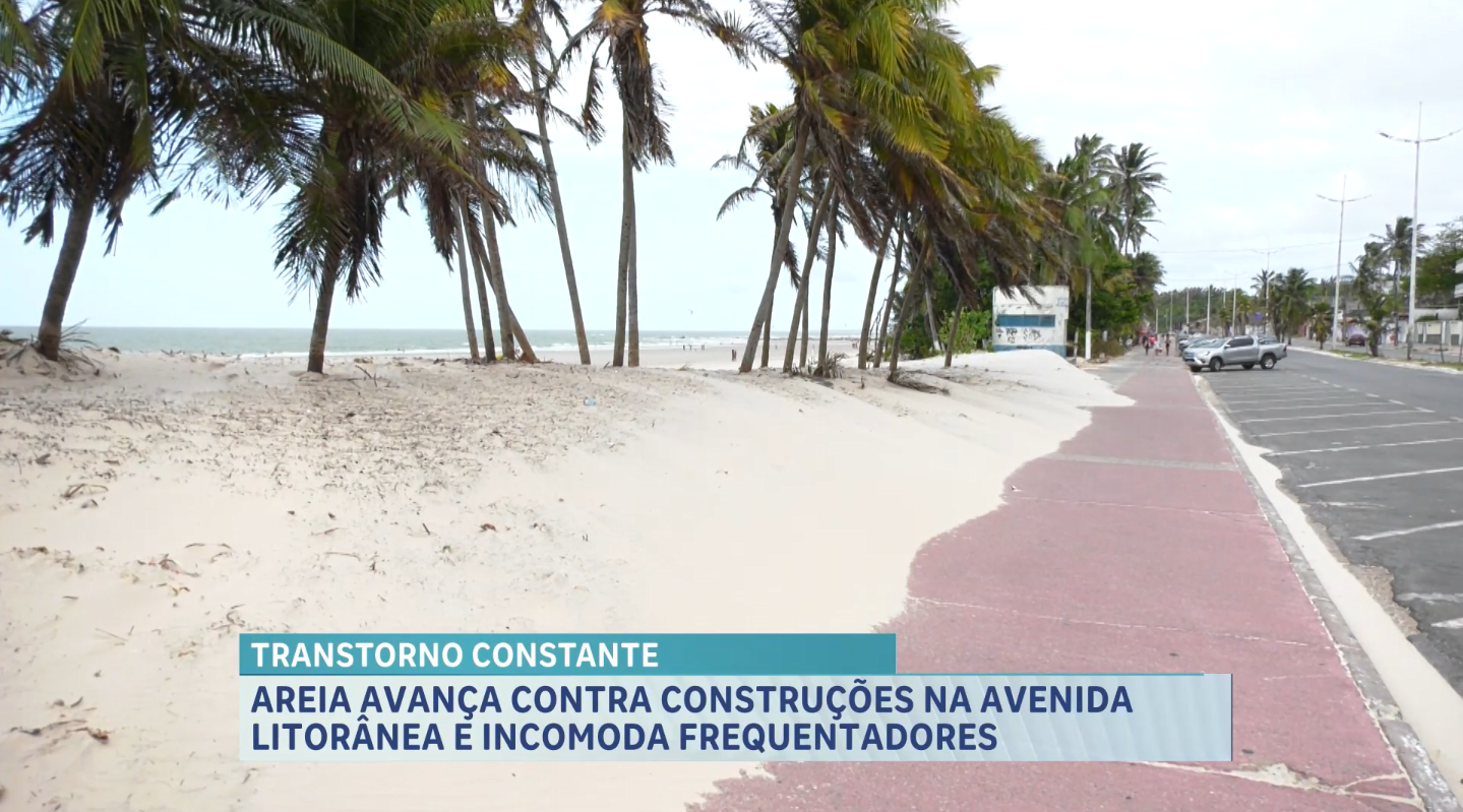 O avanço da areia sobre calçadas, bares e estruturas da Avenida Litorânea tem causado transtornos a quem frequenta a Orla de São Luís. Mesmo com a limpeza constante, o problema persiste.