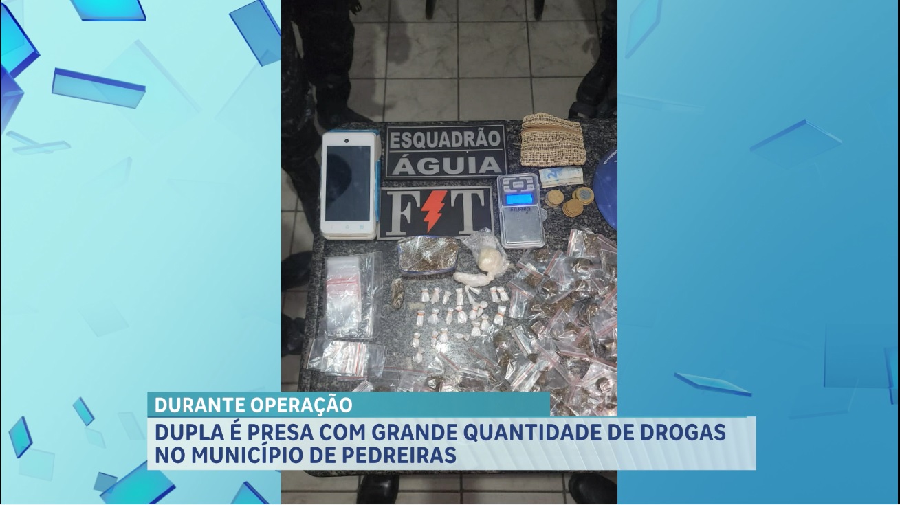 Dois homens foram presos durante uma operação policial no município de Pedreiras, no interior do Estado. Com eles, a polícia encontrou grande quantidade de drogas e até uma maquininha de cartão que pode ter sido usada para vender os entorpecentes.