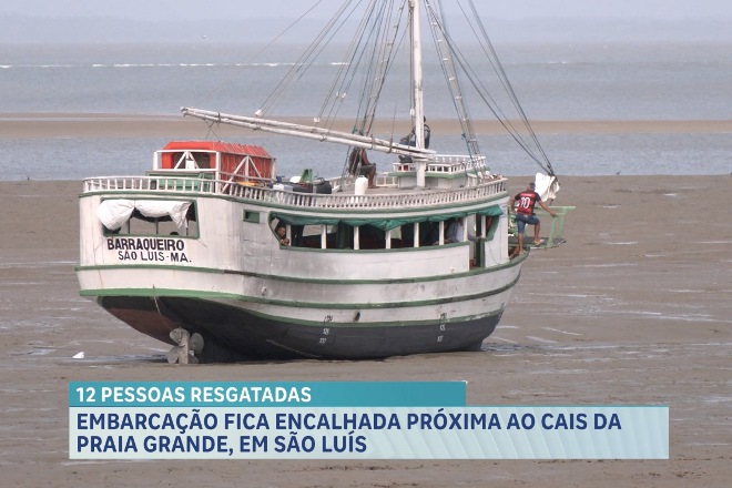 Nas primeiras horas da manhã desta segunda-feira (01), uma embarcação ficou encalhada próximo ao cais da Praia Grande, em São Luís. Segundo o comandante da Capitania dos Portos, Simões, a embarcação estava fazendo um translado até o espigão.