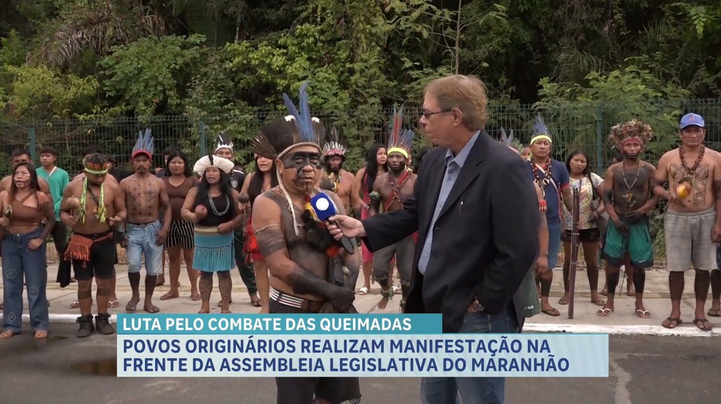 Povos originários realizaram uma manifestação em frente à Assembleia Legislativa do Maranhão, em São Luís. Segundo o cacique Raimundo, o ato tem como objetivo cobrar mais cuidado e proteção às florestas, já que as queimadas vêm destruindo territórios, afetando a fauna, as fontes de alimentação e o modo de vida das comunidades indígenas.