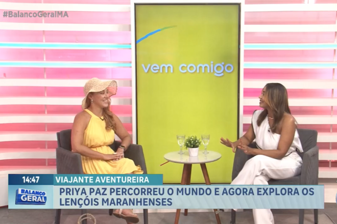 O programa "Vem Comigo" desta segunda-feira (22), recebeu a engenheira química e viajante Priya Paz, que já visitou 78 países, os 50 estados dos Estados Unidos e 15 estados brasileiros. Agora, ela desembarca no Maranhão para conhecer os Lençóis Maranhenses, um dos destinos mais aguardados de sua jornada.