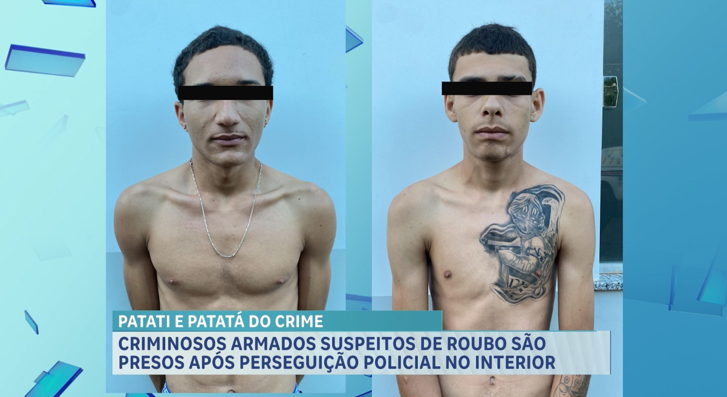 A Polícia Militar prendeu dois homens identificados apenas como “Patati e Patatá” por suspeita de diversos roubos na região de Trizidela do Vale, no interior do Maranhão.