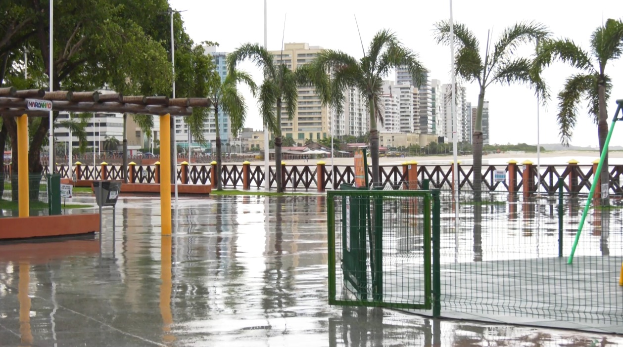A força das águas tem nível elevado na orla São Luís, na região da Península da Ponta d'Areia, onde as ondas alcançaram o calçadão da recém-inaugurada Praça do Sol. O fenômeno, chamado de Maré de Sizígia, característico da capital maranhense por possuir uma das maiores amplitudes de maré do Brasil, registrou níveis de até 5,7 metros logo nas primeiras horas da manhã. O especialista, Daniel Pereira explica que essa variação é recorrente e intensificada pela influência gravitacional da Lua Cheia e do Sol.