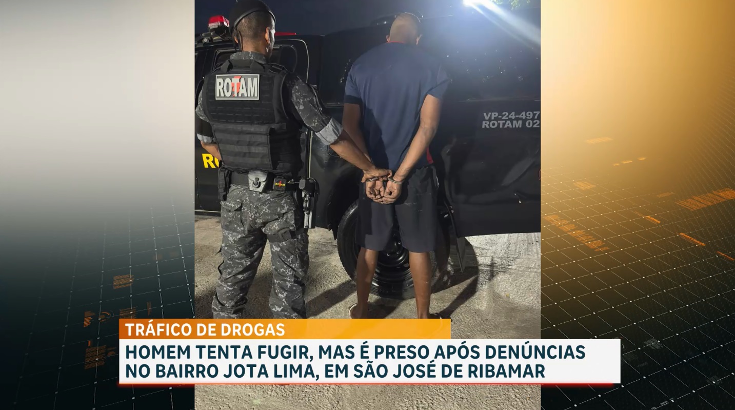 A Polícia Militar, por meio das Rondas Ostensivas Táticas Metropolitanas (ROTAM), prendeu um homem suspeito de tráfico de drogas após denúncias feitas por moradores da região. Segundo o tenente Campos, as informações indicavam que um indivíduo estaria comercializando entorpecentes no local.
