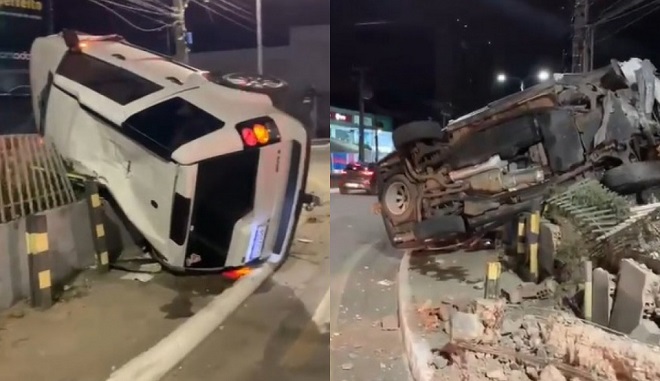 Segundo informações, no automóvel, além do motorista, havia mais três ocupantes. O condutor teria perdido o controle do veículo e acabou colidindo no muro.