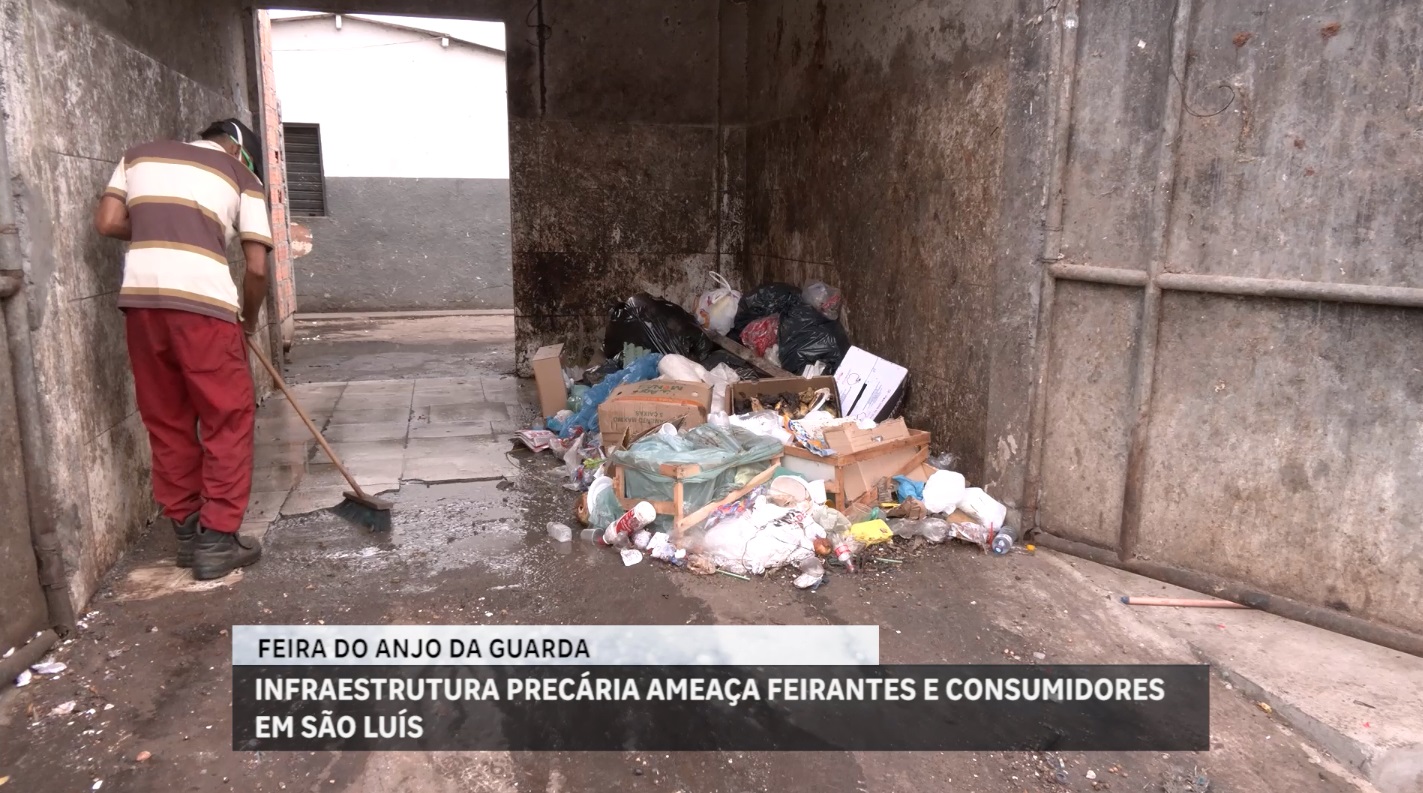 O Dia de Feira desta segunda-feira (24) destacou as condições precárias da Feira do Anjo da Guarda, em São Luís. O espaço apresenta esgoto a céu aberto, bancadas danificadas, acúmulo de lixo e falta de banheiros adequados, problemas que evidenciam a falta de higienização do local. A situação preocupa, sobretudo porque a feira é um dos principais pontos de movimentação econômica do bairro e recebe um grande fluxo de moradores diariamente.